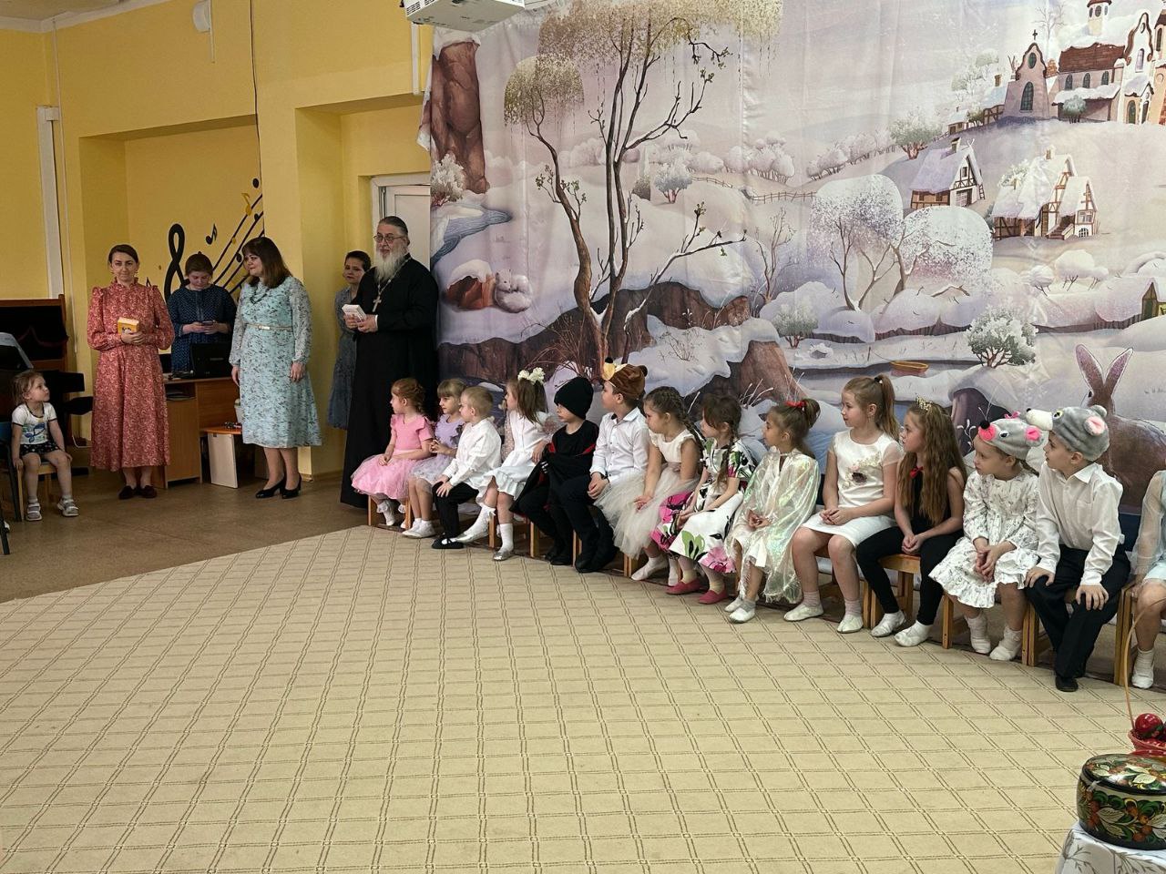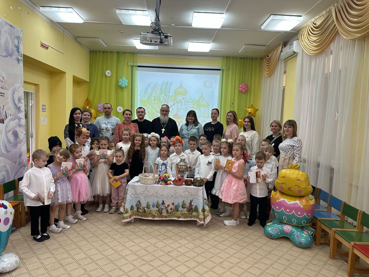 В гостях у ребят побывали протоиерей Виктор Нестеров, настоятель Космо-Дамианского храма г.Королёв и преподаватель "Основы православной культуры" В. А. Белоногова. Ребята водили хороводы, пели песни, рассказывали стихи. Отец Виктор поздравил всех со светлым праздником Пасхи, пожелал всем здоровья и подарил подарки.