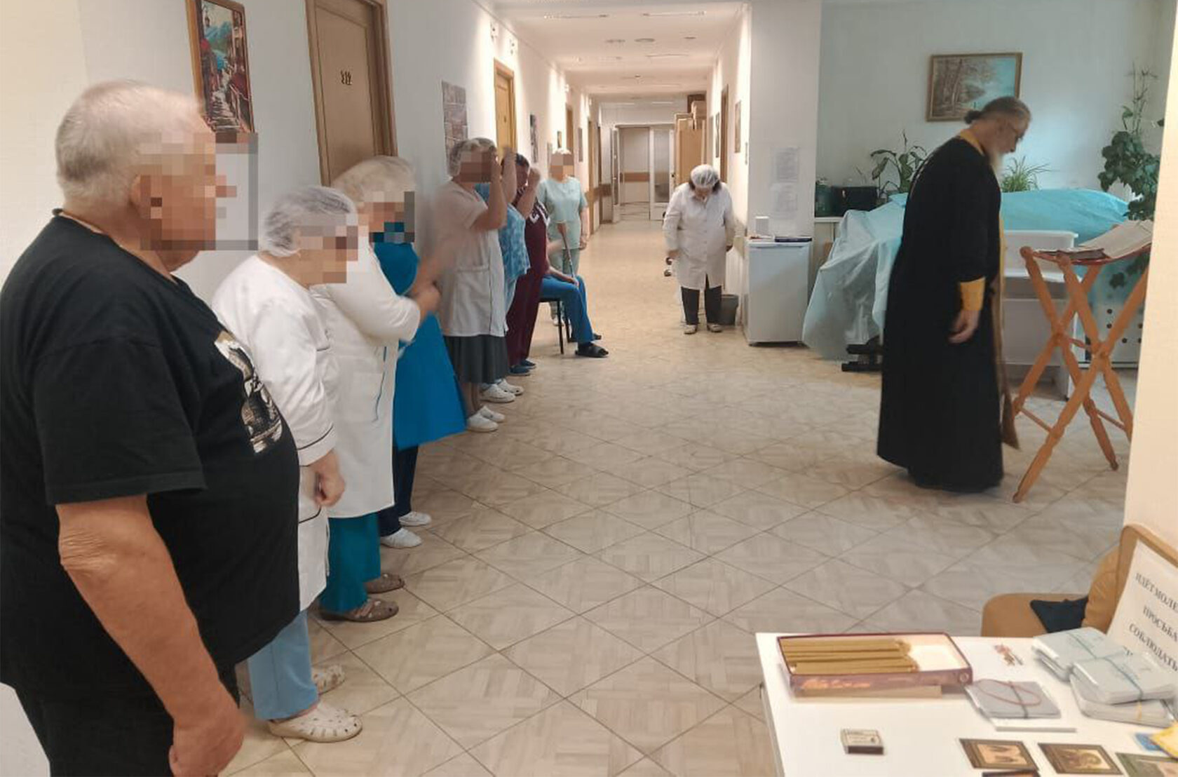 Отец Виктор совершил молебен о здравии и литию об упокоении. Он поздравил персонал и пациентов с великим праздником, окропил всех святой водой, пожелав помощи Божией, крепкого здоровья и скорейшего выздоровления.