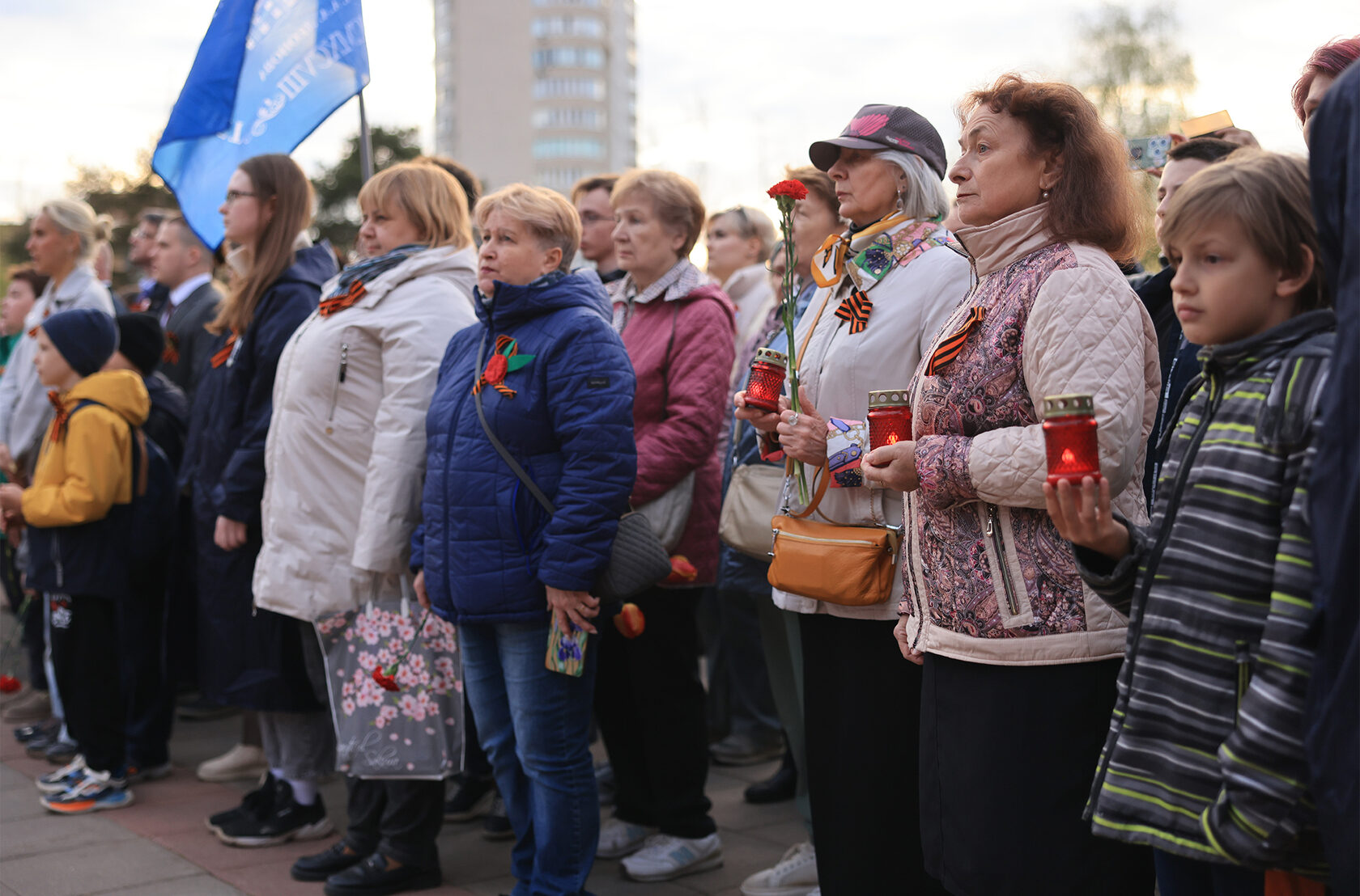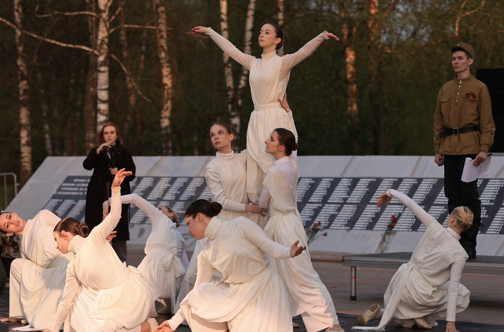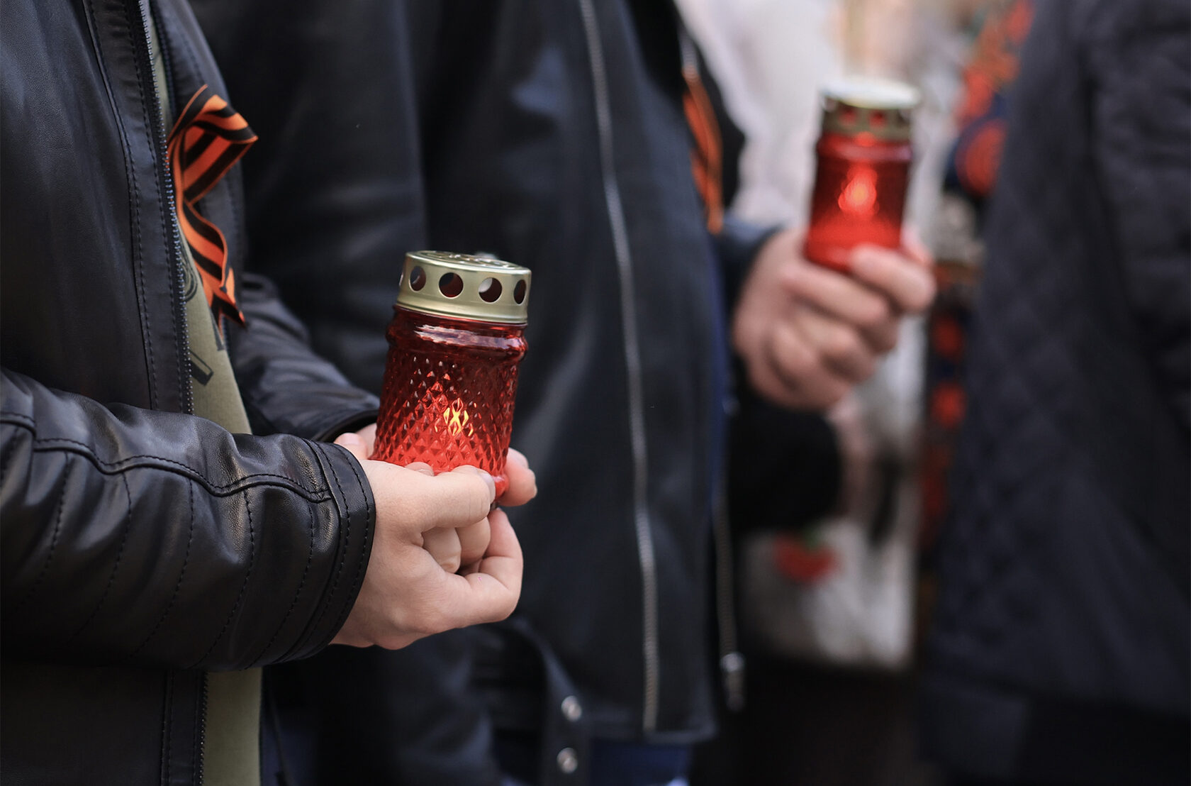 Во время акции студенты исполнили песни военных лет и представили тематическую театральную постановку. А также выложили из свечей традиционное слово «Помним!».