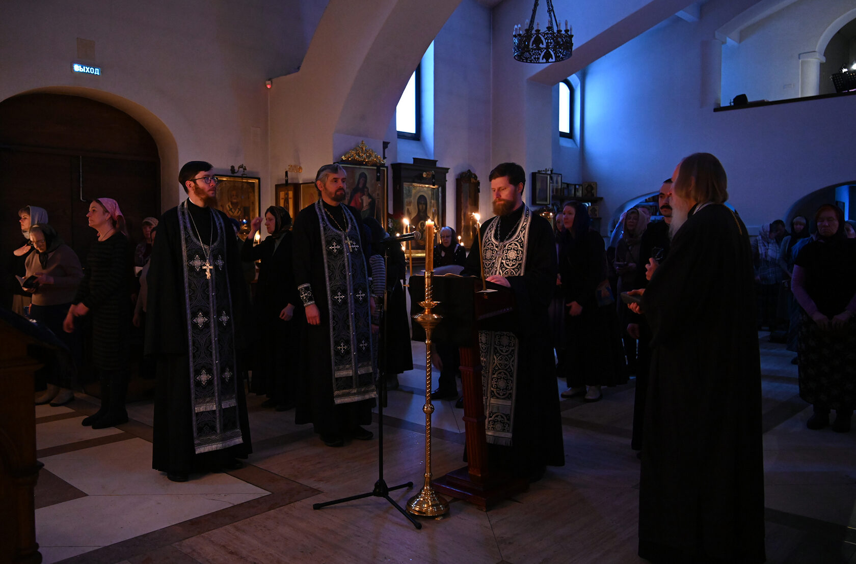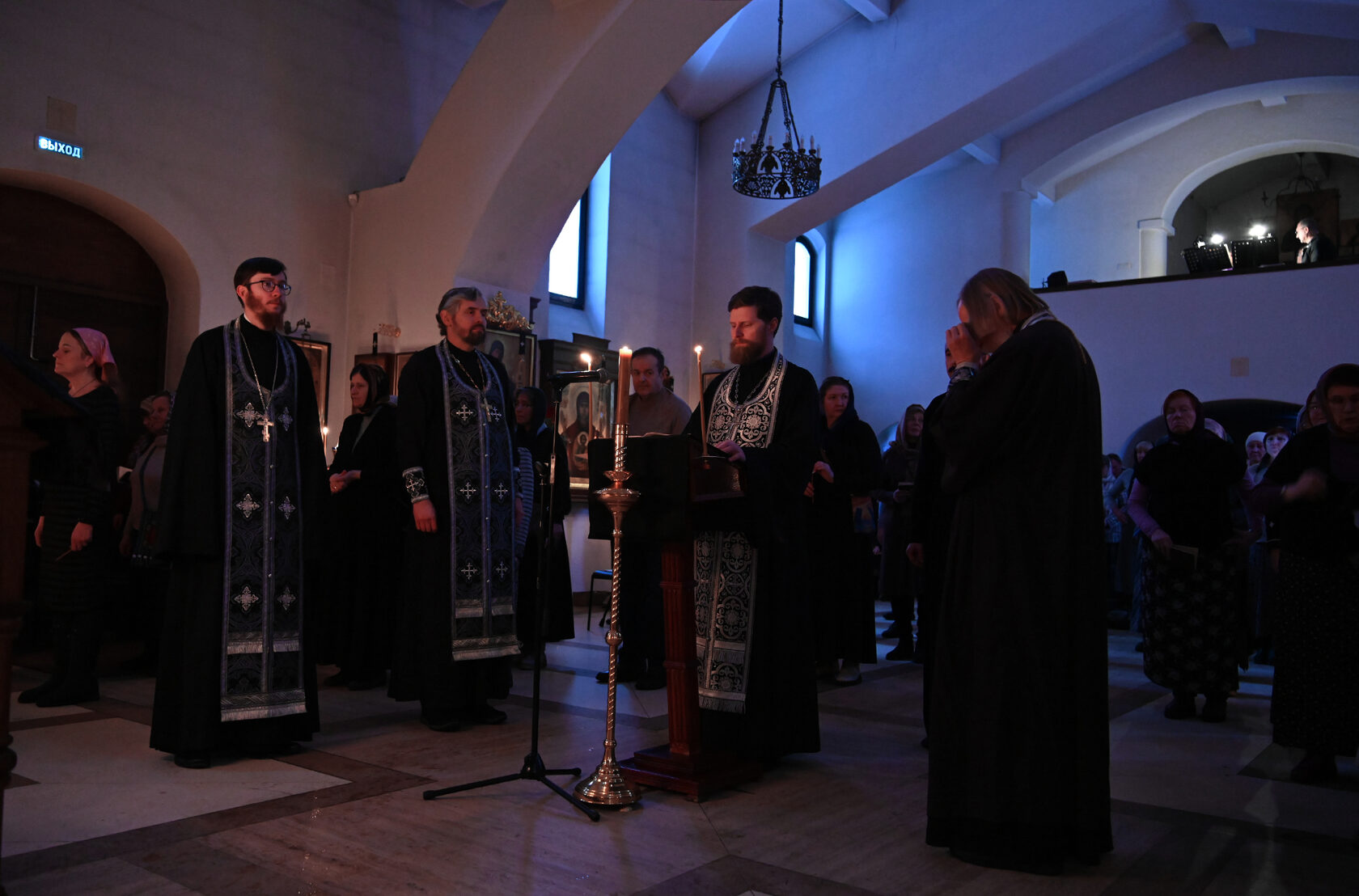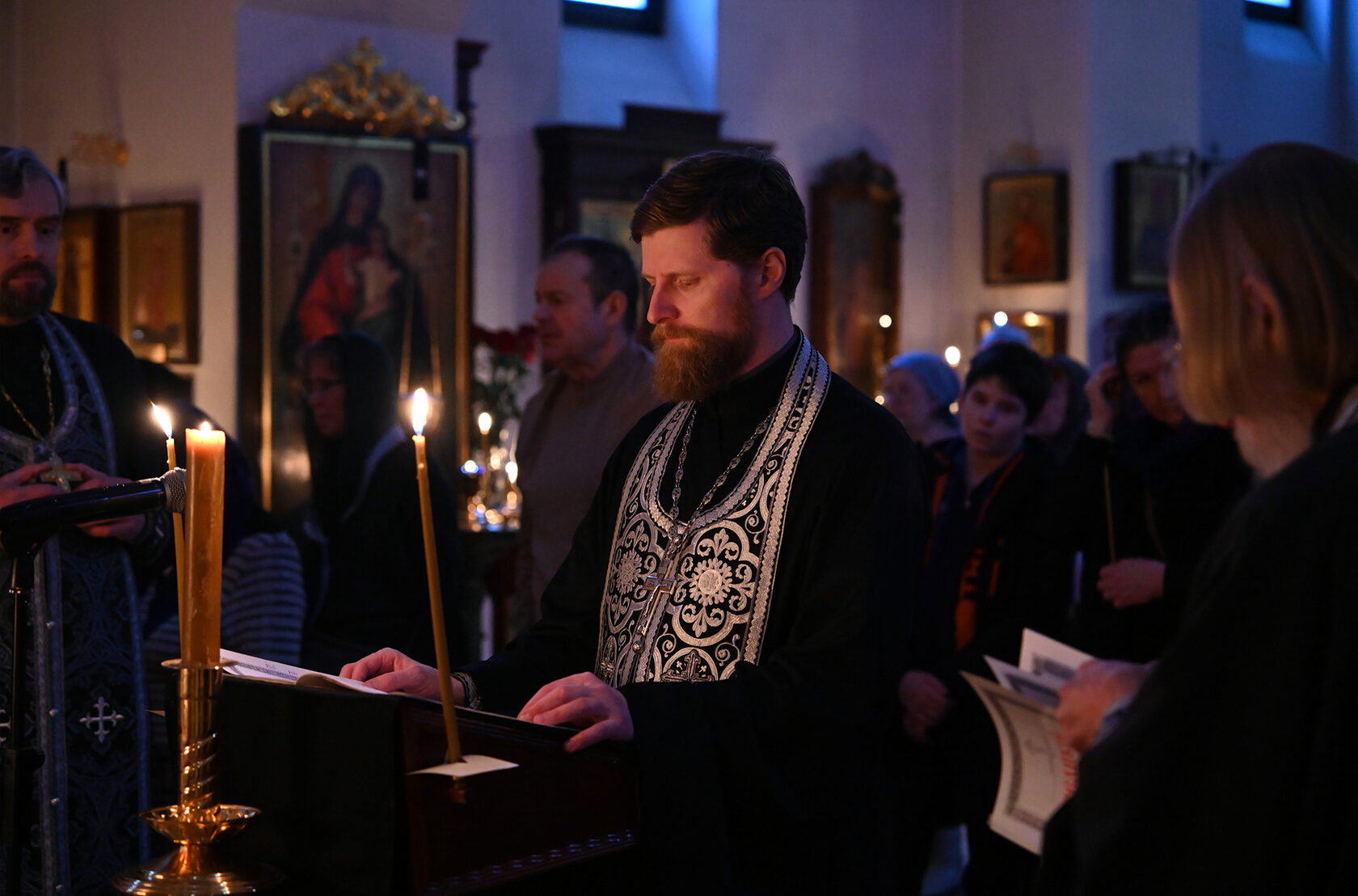 Вечером 24 февраля, во вторник первой седмицы Великого поста, благочинный церквей Королёвского округа священник Димитрий Поповский и настоятель храма священник Глеб Козлов в сослужении клириков храма совершили Великое повечерие с чтением второй части покаянного канона преподобного Андрея Критского в храме Владимира Священномученика г. Королёва.