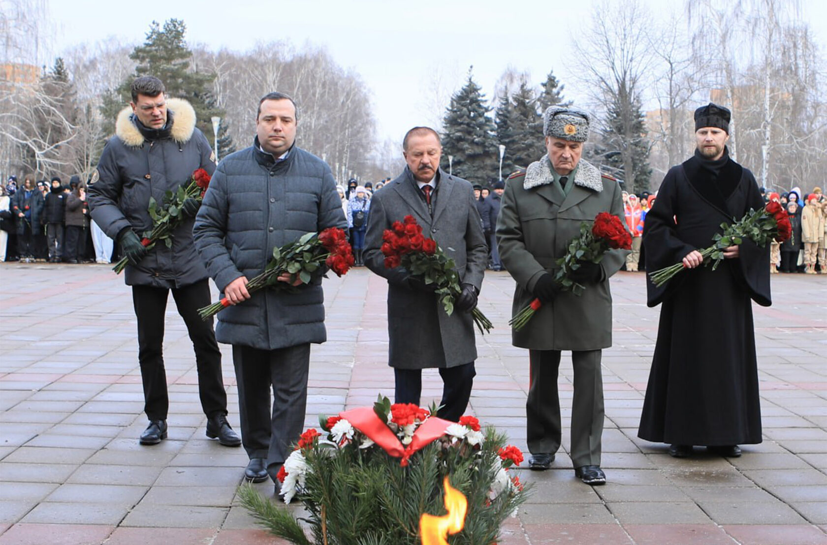 20 февраля в преддверии Дня защитника Отечества г. Королёве прошла церемония возложения цветов к памятникам воинской славы. В мероприятии приняли участие глава города Игорь Трифонов, депутат Госдумы Денис Кравченко, советник генерального директора КТРВ и ветеран боевых действий Владимир Бугреев, благочинный церквей Королёвского округа и настоятель Богородицерождественского храма иерей Димитрий Поповский, участники специальной военной операции и их семьи, депутаты городского Совета, ветераны, юнармейцы, школьники, студенты и жители.