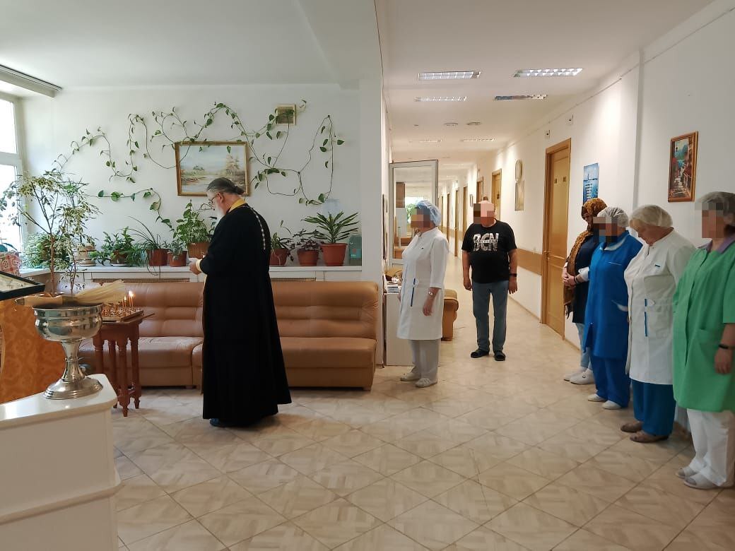 В медучреждении отец Виктор совершил молебен о здравии страждущих и литию о упокоении усопших. По завершении богослужения священник поздравил медицинский персонал и пациентов с праздником, окропил всех присутствующих освященной водой и пожелал помощи Божией в трудах во благо здоровья, а больным — скорейшего выздоровления.