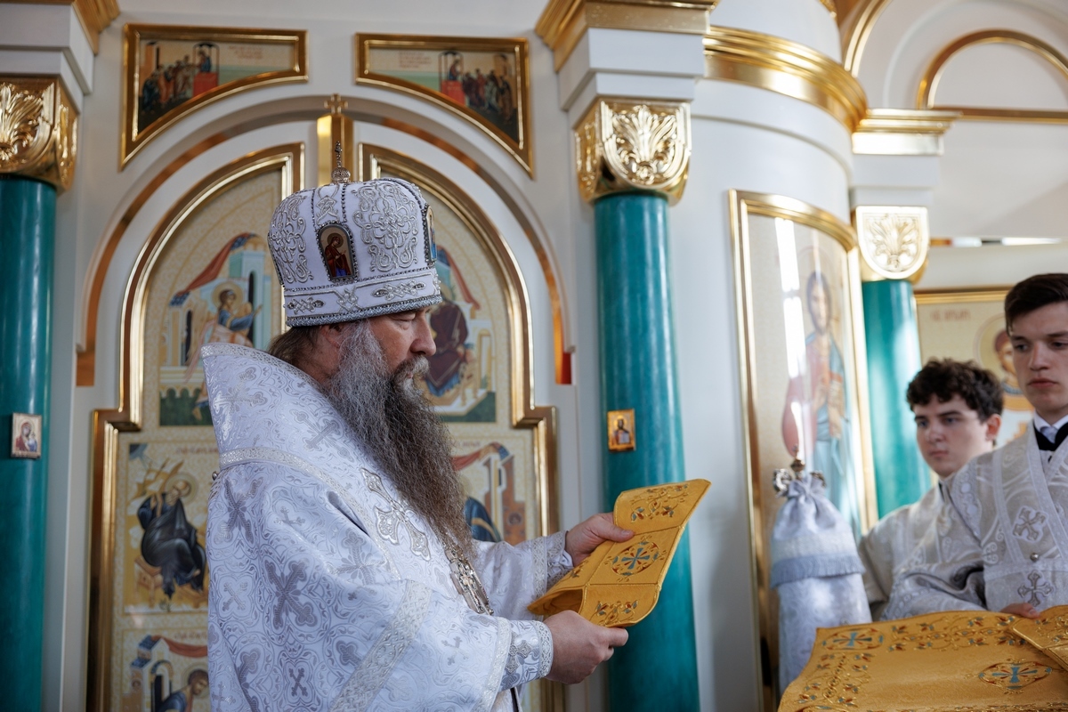 В завершение Литургии протоиерей Афанасий Чорногуз поблагодарил епископа Кирилла за великое освящение храма. Его Преосвященству был подарен букет белых роз. Также со словами благодарности к архиерею обратился М. Н. Шувалов.