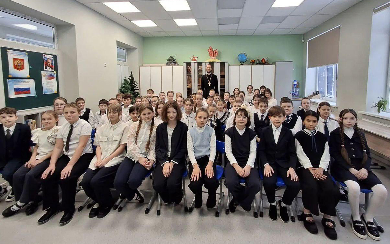 28 января клирик Богородицерождественского храма города Королёва священник Иоанн Колчин провёл тематический урок для учащихся четвертых классов средней общеобразовательной школы № 10.