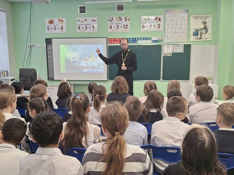 В рамках встречи отец Иоанн рассказал школьникам о десяти заповедях, объяснив их значение в контексте христианской нравственности и повседневной жизни. Также в ходе беседы были затронуты другие важные вопросы, связанные с моральным выбором и духовными ценностями.