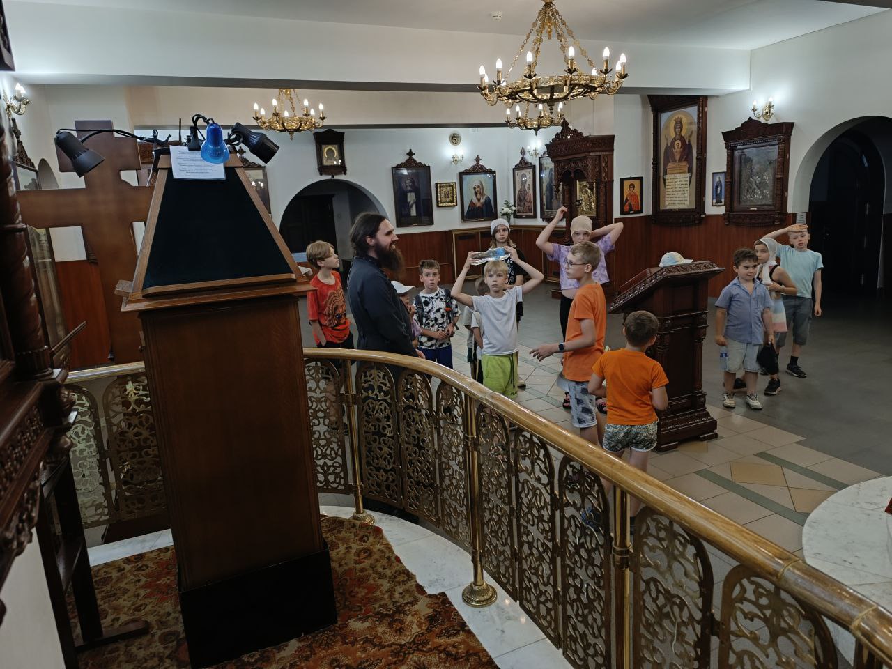 10 июля клирик храма Рождества Пресвятой Богородицы города Королёва священник Владимир Ткач провёл экскурсию для детей из спортивного лагеря «Монолит». Ребята познакомились с устройством храма, его историей и духовными традициями.