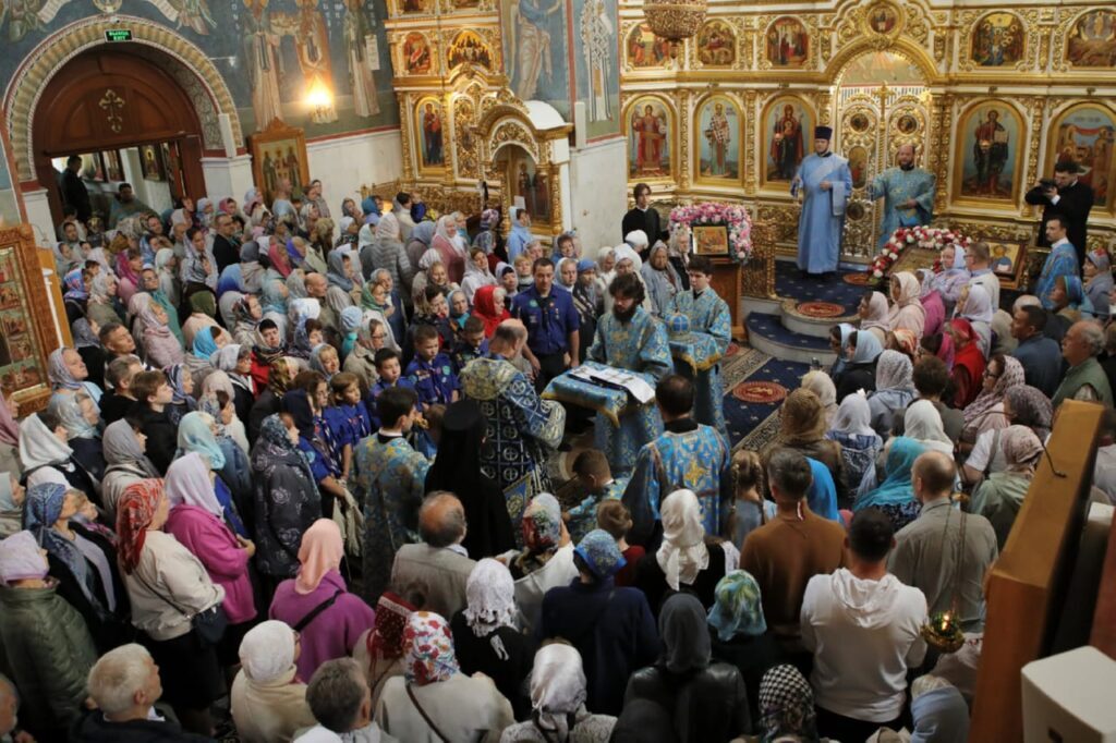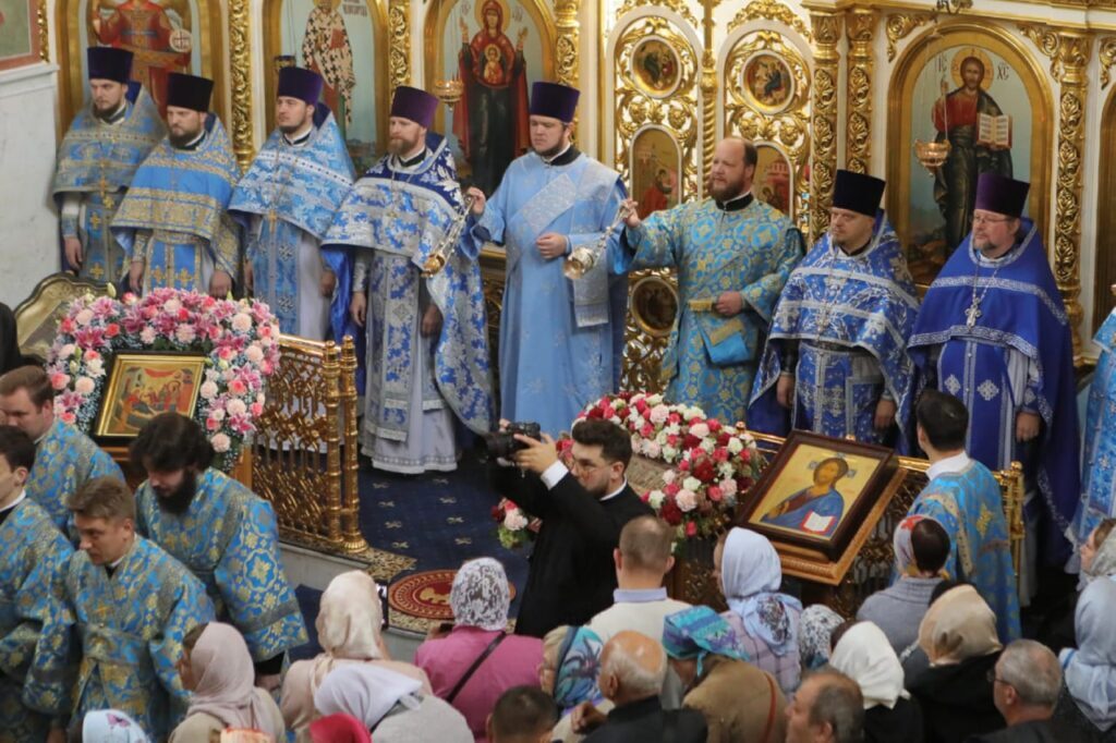 По окончании Литургии были совершены крестный ход и славление в честь праздника Рождества Пресвятой Богородицы.