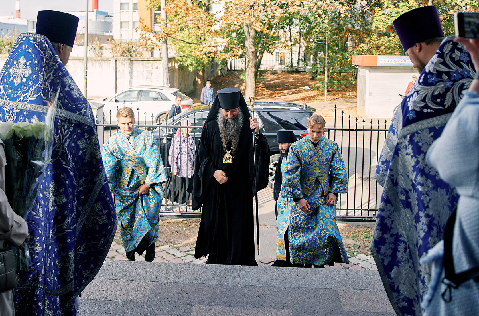 У дверей храма владыку Кирилла встречали секретарь Сергиево-Посадского епархиального управления протоиерей Иоанн Монаршек, благочинный церквей Королёвского округа иерей Димитрий Поповский и депутаты Совета депутатов г.о. Королёв О. Д. Кононенко, И. А. Яковлева, О. В. Лизогуб и М. В. Масик.