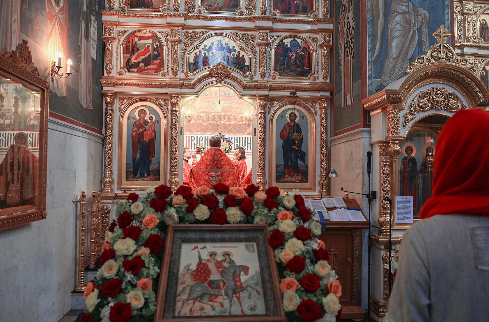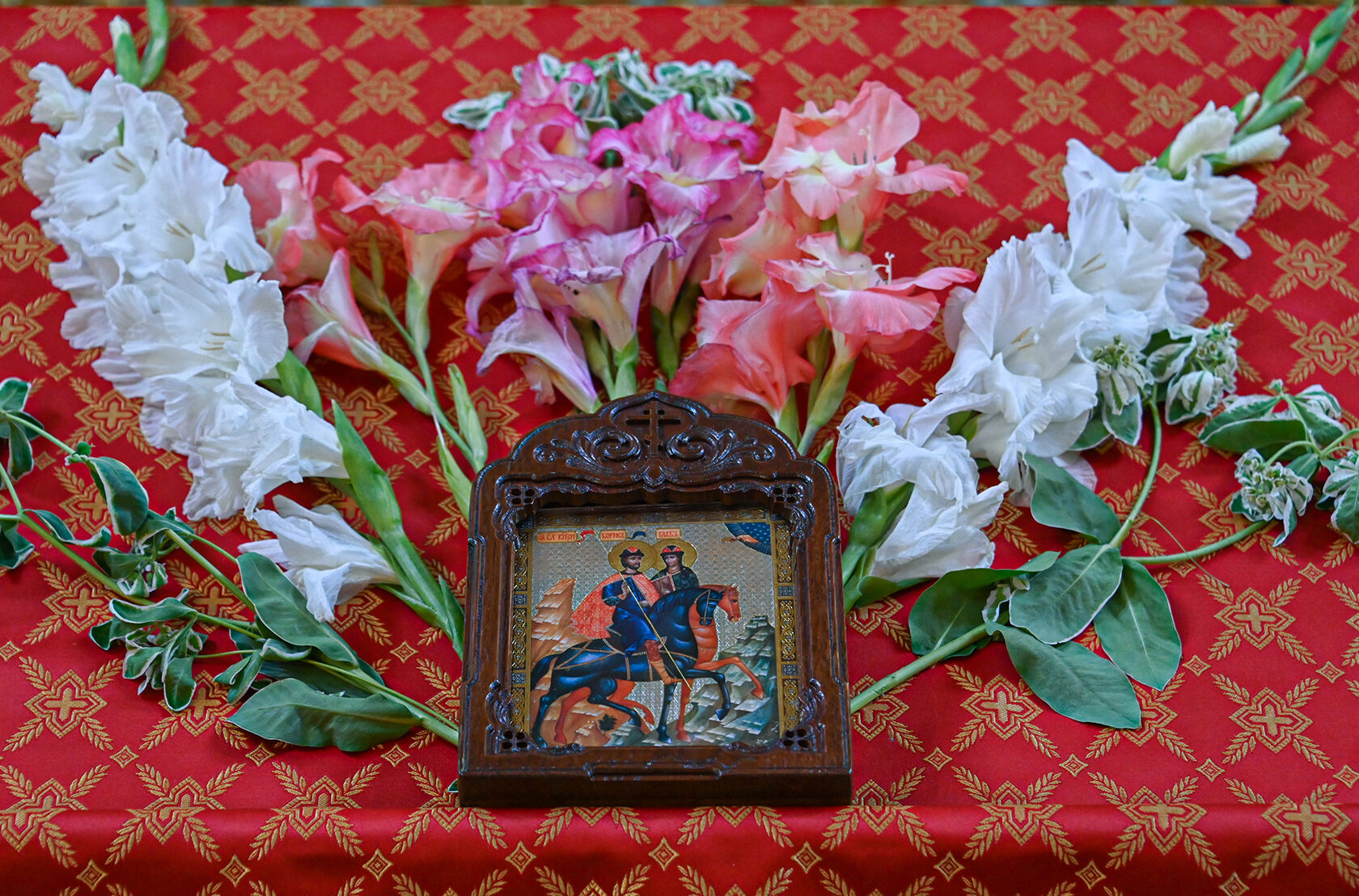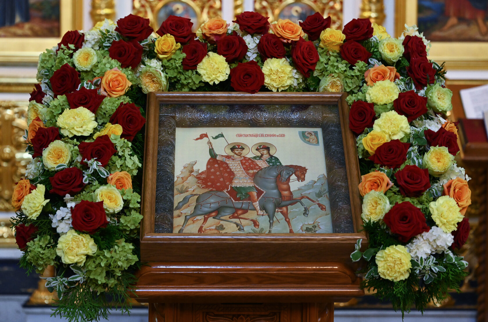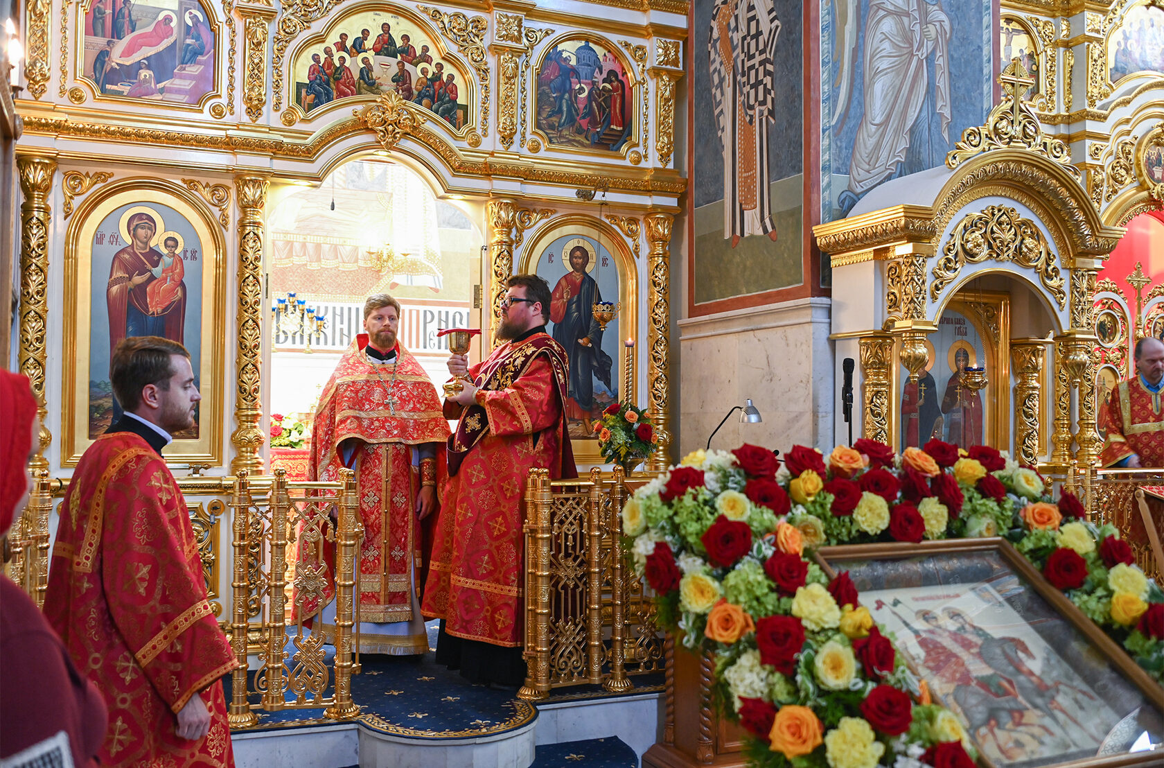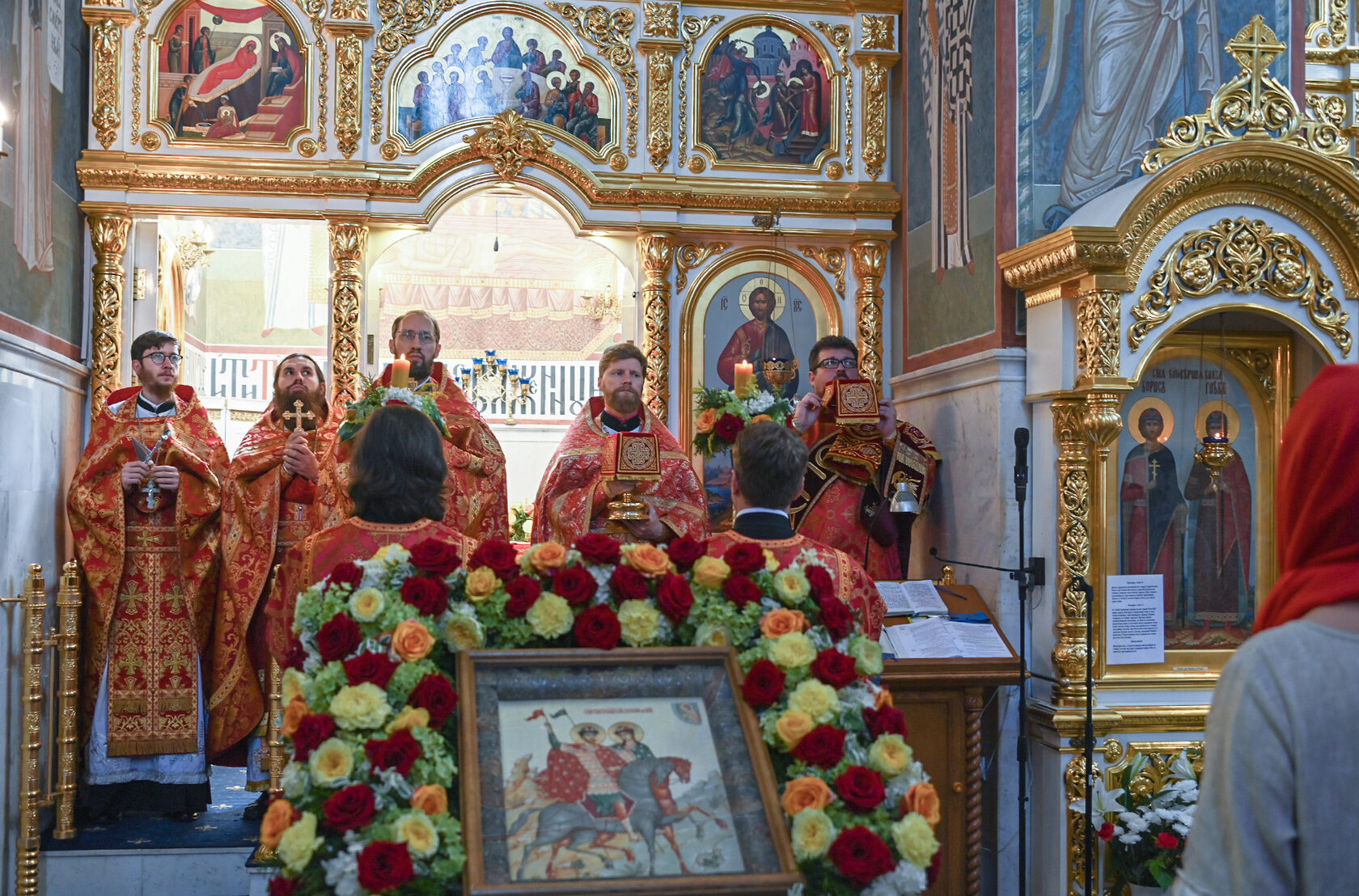 Настоятель храма священник Димитрий Поповский возглавил Божественную литургию, за которой молились прихожане и гости. По окончании богослужения духовенство и миряне совершили славление перед образом святых князей, а затем прошел крестный ход вокруг храма.