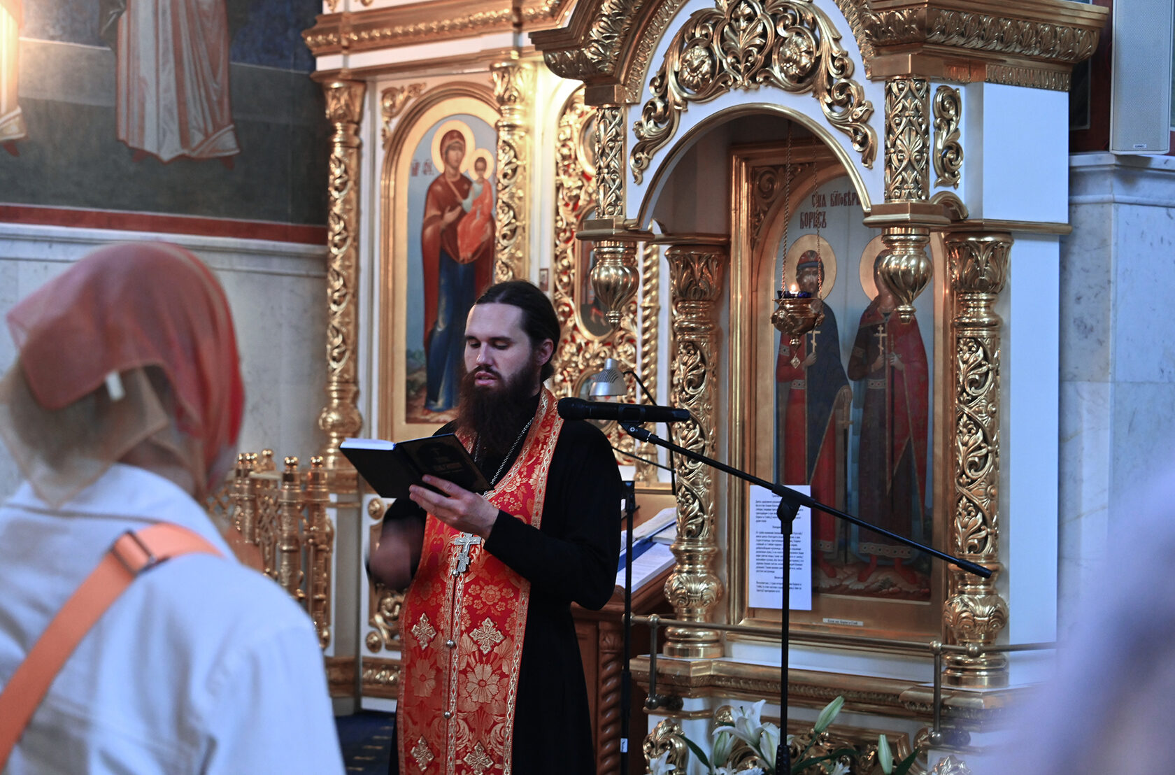 Отец Димитрий обратился к верующим с пастырским словом, напомнив о подвиге святых Бориса и Глеба — их смирении, вере и преданности Христу, а также поздравил всех с престольным праздником.