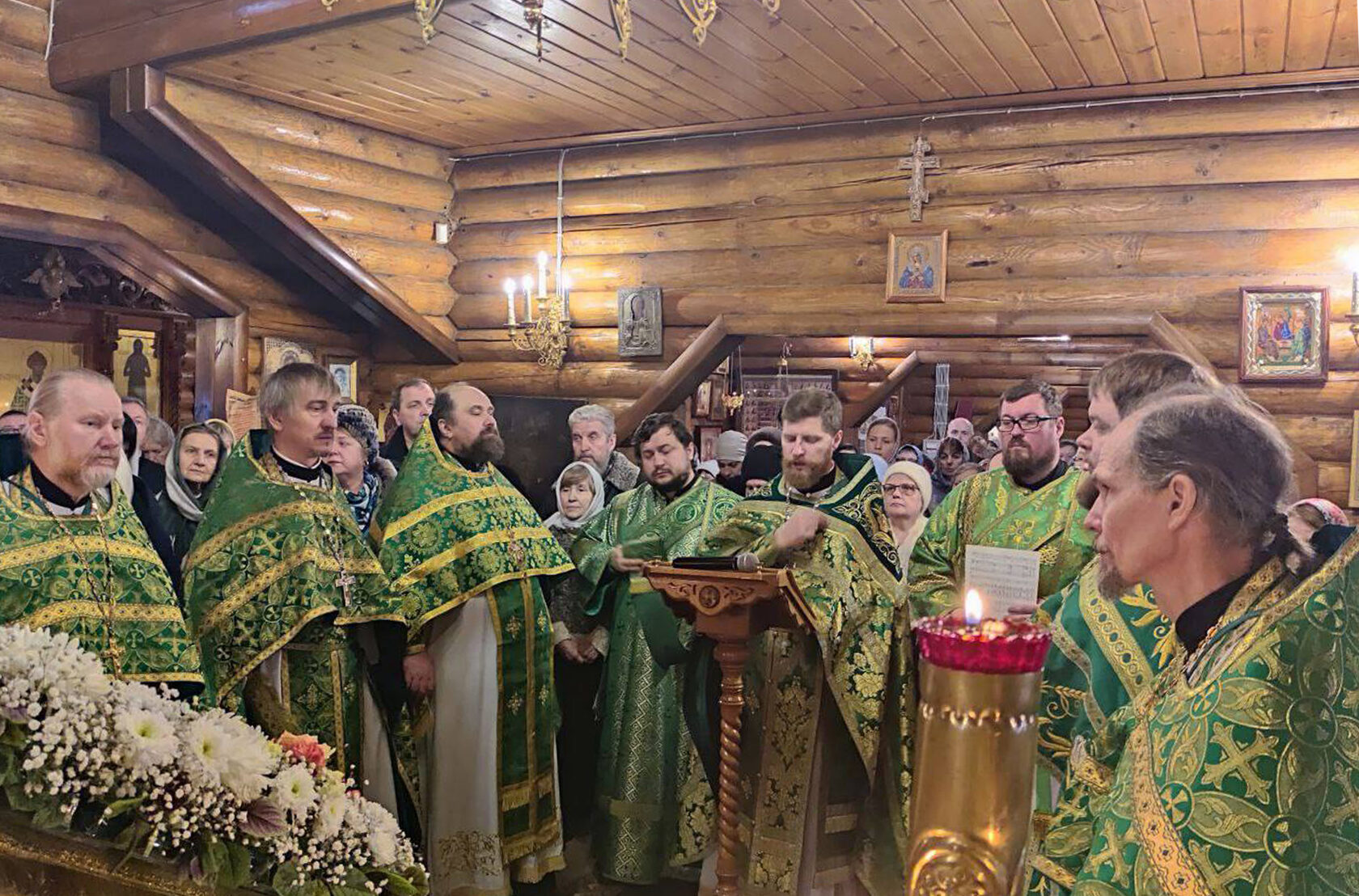 После чтения Святого Евангелия благочинный обратился к молящимся с проповедью. Прихожане и гости Серафимовского храма за богослужением молитвенно почтили великого русского святого, многие причастились Святых Христовых Таин.