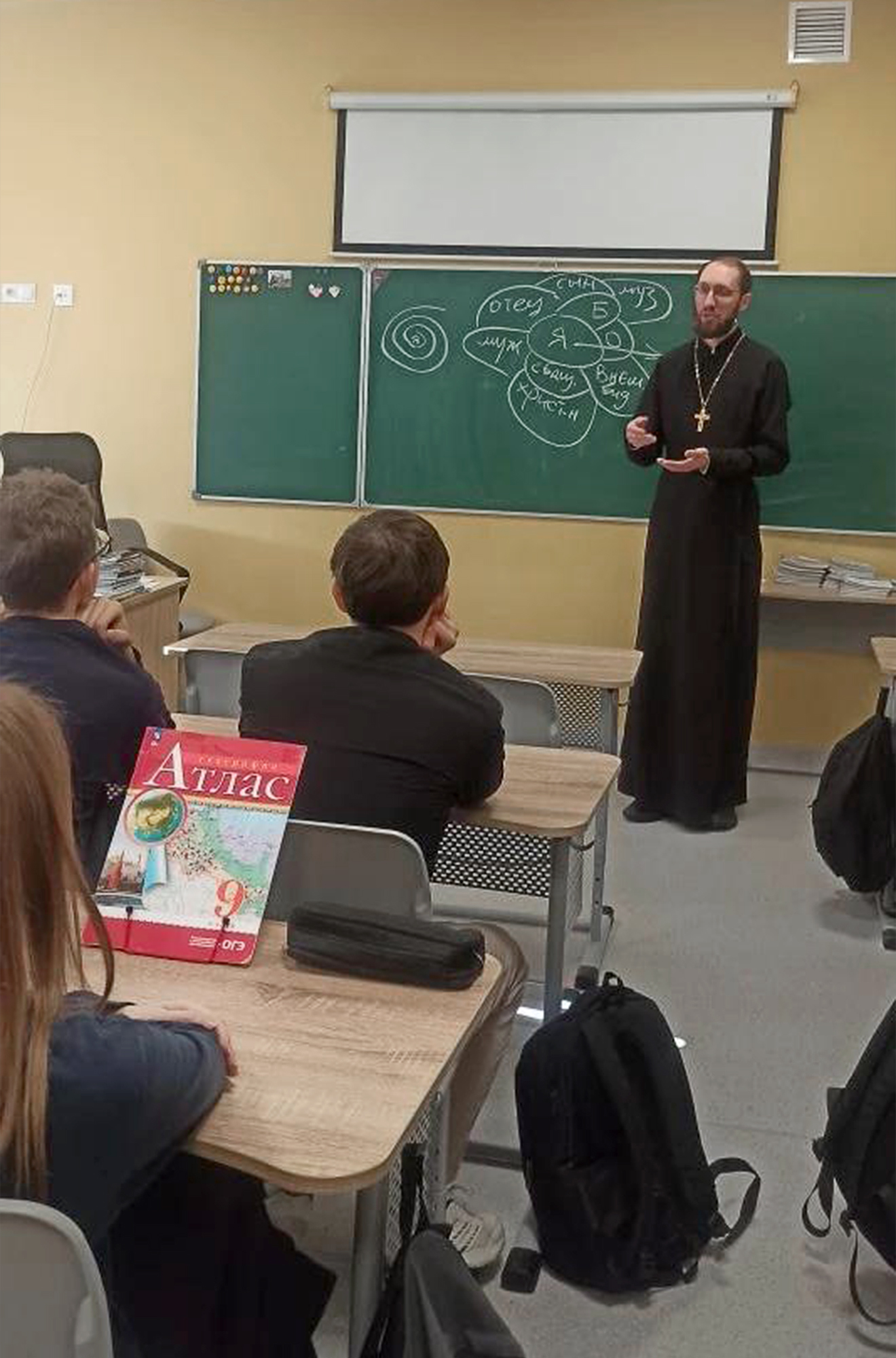 17 февраля в школе №10 г. Королёва состоялась встреча учащихся 9"Б" класса с клириком Богородицерождественского храма священником Иоанном Колчиным.