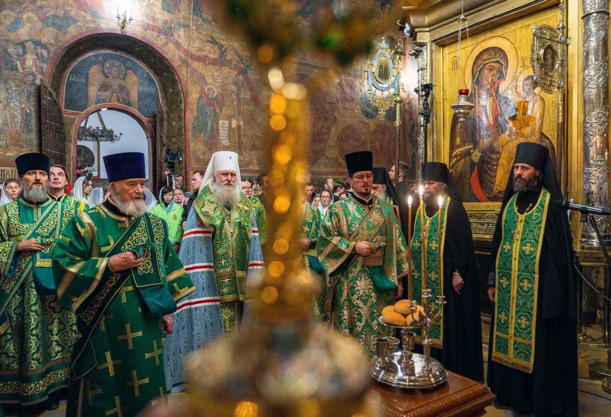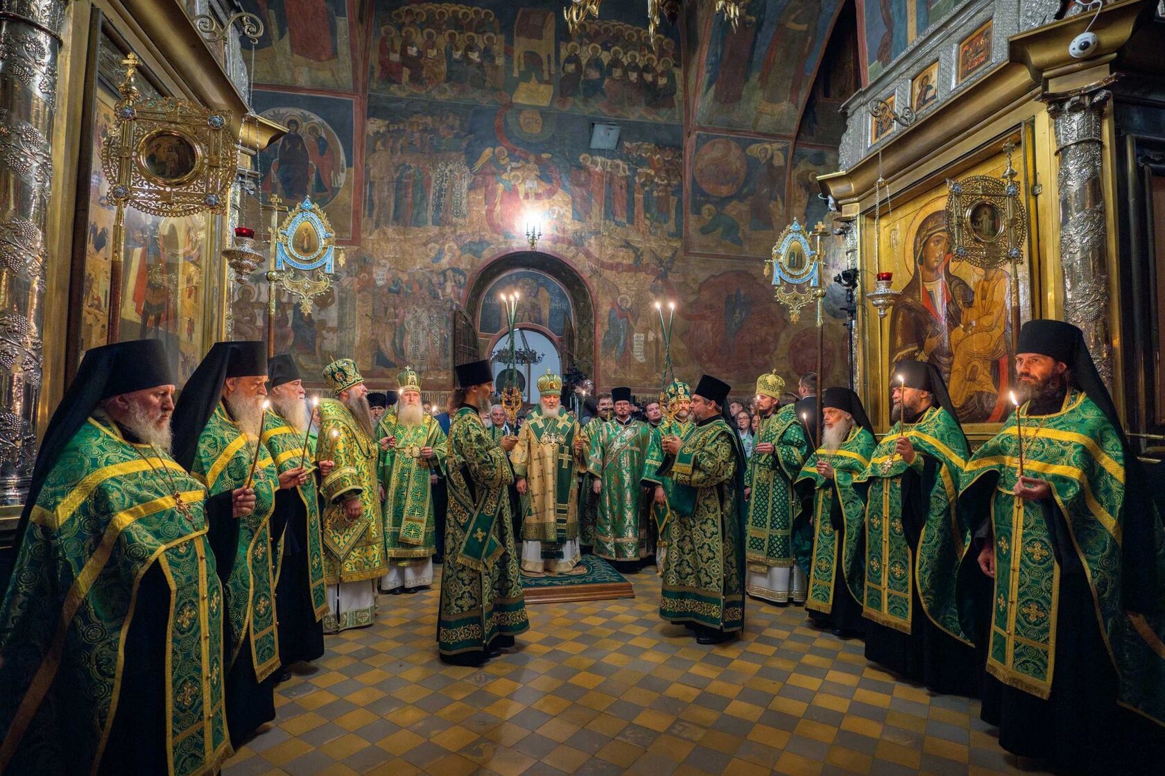 В храме молились архиереи, настоятельницы женских монастырей, священнослужители, монашествующие и паломники, прибывшие на торжества в лавру.