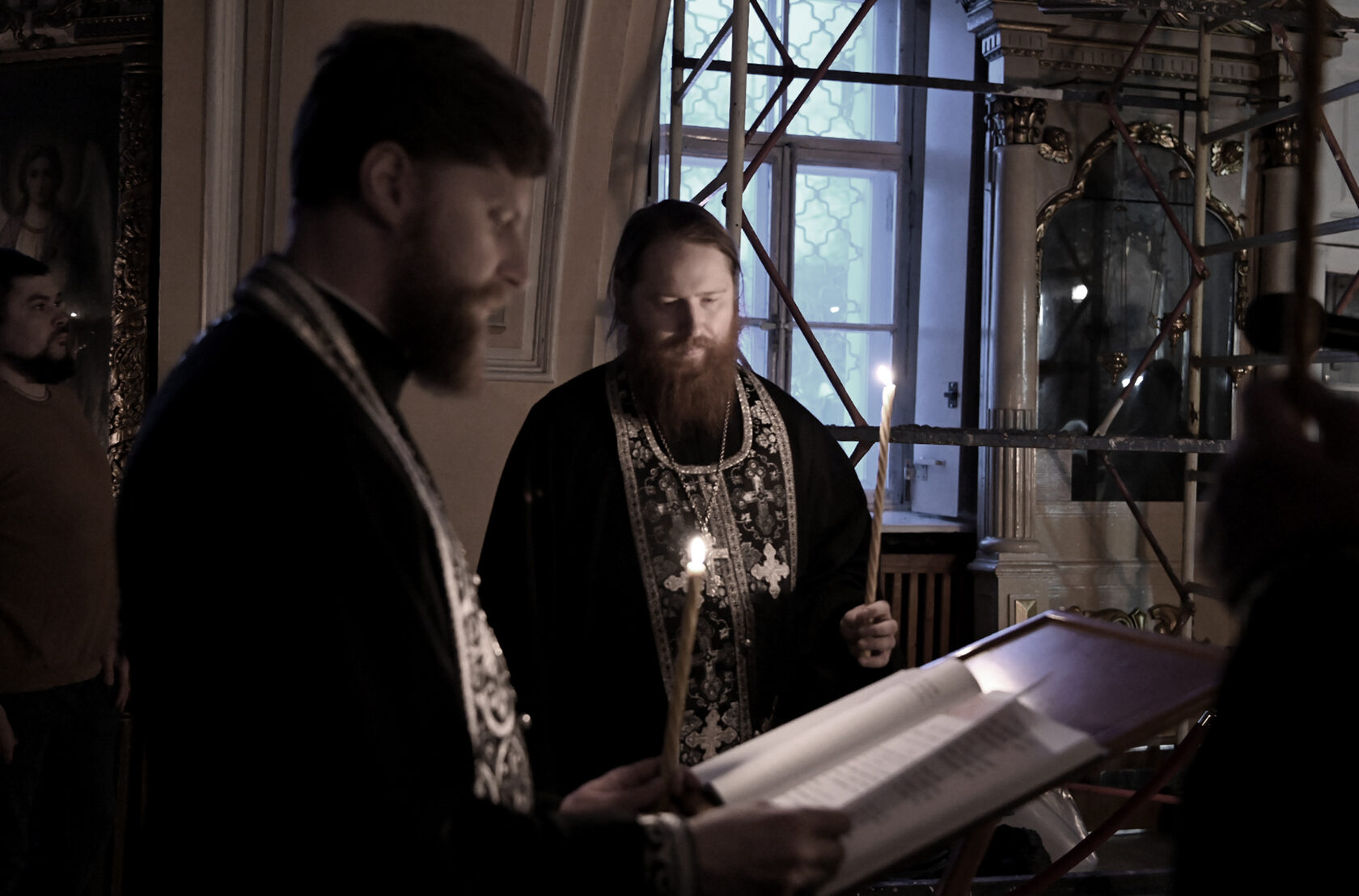 Вечером 26 февраля, в четверг первой седмицы Великого поста, благочинный церквей Королевского округа священник Димитрий Поповский и настоятель храма протоиерей Виктор Нестеров совершили чтение Великого покаянного канона прп. Андрея Критского в Космо-Дамианском храме г. Королёва.