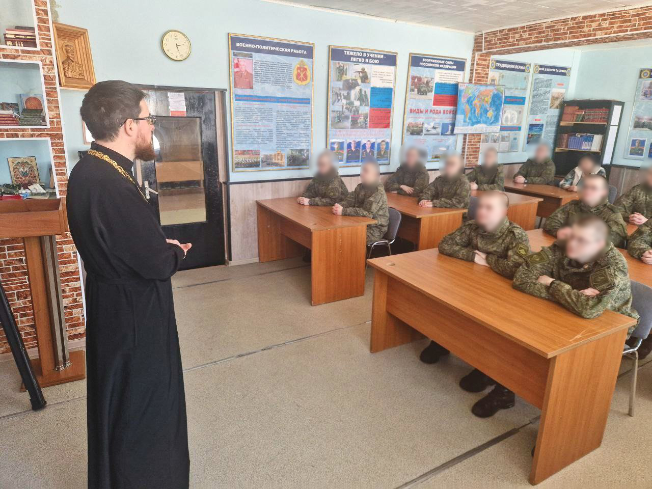Священник поздравил офицеров и личный состав с праздником, пожелав им крепости духа и Божией помощи в ратном труде. Пользуясь случаем, отец Антоний провел беседу с вновь поступившими на службу военнослужащими в воинском классе и передал им духовную литературу.