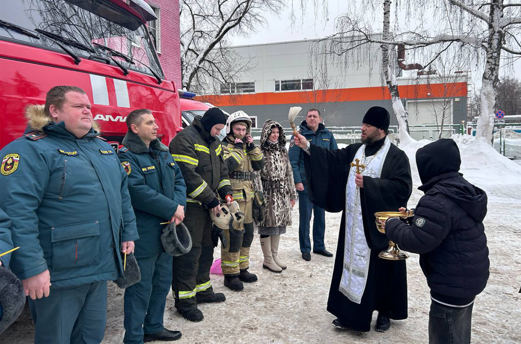 пожарную технику. По окончании освящения батюшка поздравил весь пожарный расчет с праздником, рассказал о празднике Крещения Господня и поблагодарил за нелегкий труд по предотвращению пожаров и призвав полагаться не только на себя, но и на помощь Божию.