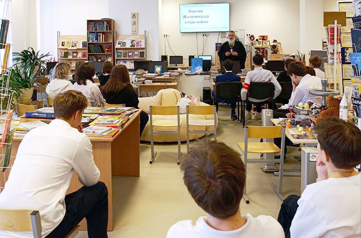 Отец Виктор рассказал о том, как жил город в военные годы, и обратился к истории здания лицея: в 1942 году здесь находился госпиталь для раненых бойцов. Священник подчеркнул важность сохранения памяти о событиях военных лет.