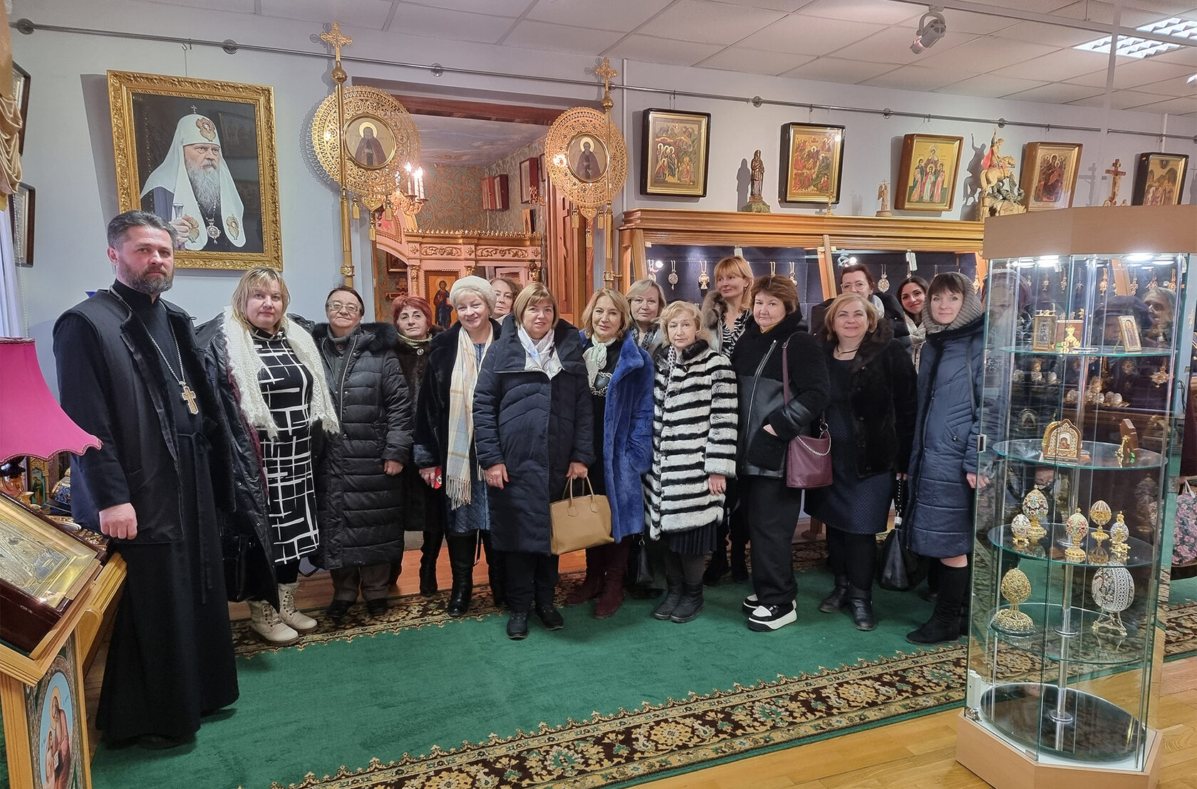 Экскурсия началась с посещения храма преподобного Серафима Саровского, который расположен на территории предприятия. Настоятель, протоиерей Вадим Поликопа рассказал о истории постройки и благоукрашения храма. Далее экскурсанты посетили музей предприятия, где ознакомились с историей возникновения и развития завода, чья продукция украшает храмы не только Русской Православной Церкви, но и других христианских церквей. Например, было интересно увидеть современный наперстный крест священника Коптской Церкви. Затем экскурсия продолжалась в пошивочном и гальваническом цехах. Особый интерес вызвал свечной цех, где буквально на глазах как бы из ничего получаются те самые маленькие и большие свечи, которые во множестве горят перед образами святыми в храмах нашей Церкви. В заключение группа увидела печатный цех и выставочный зал. Перед отъездом в Королёв экскурсанты посетили магазины предприятия.