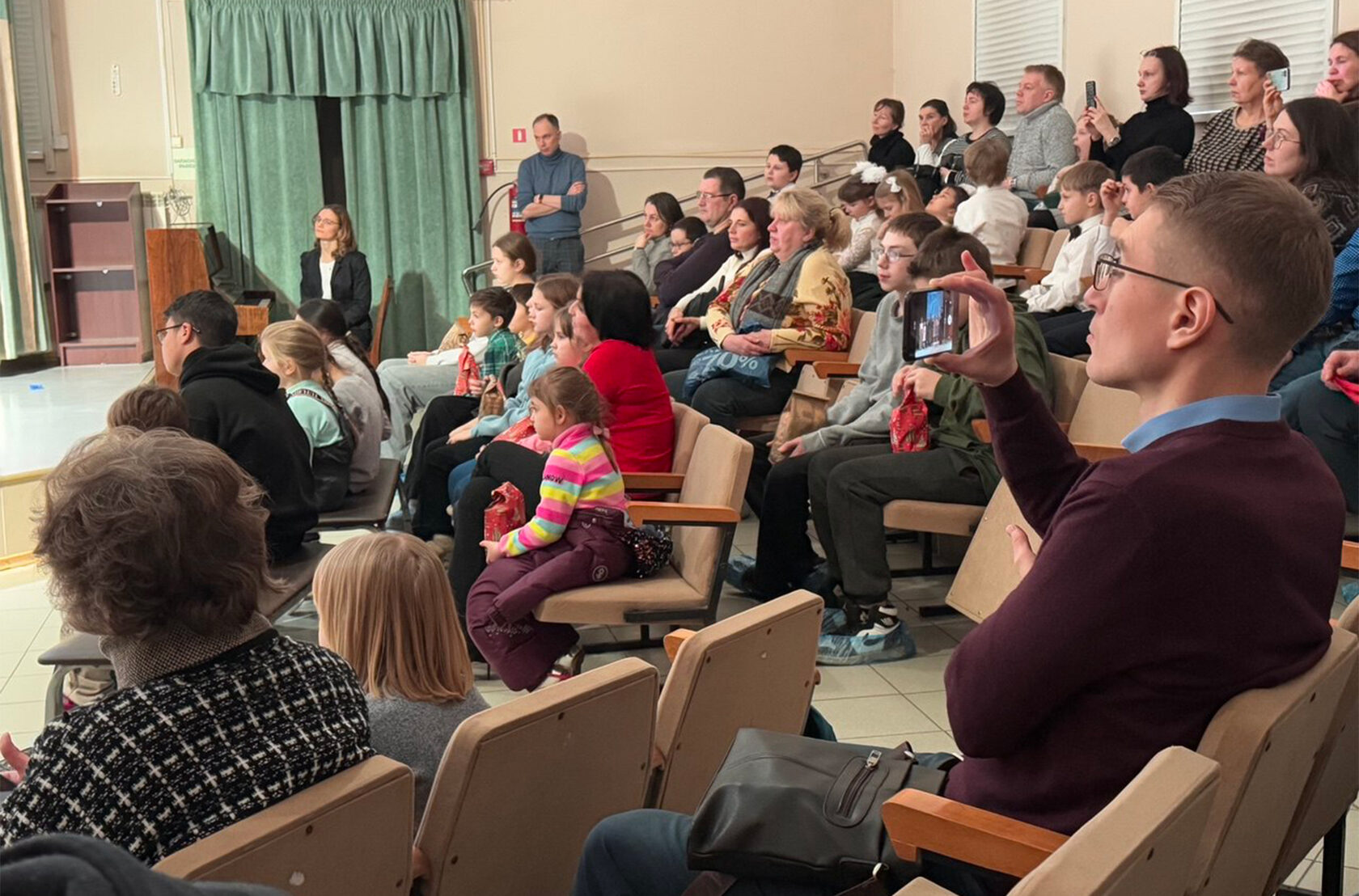 Затем Театр классической музыки под руководством О. Б. Куликовской представил фильм-оперу «Голубой щенок». В заключении мероприятия благочинный церквей Королевского округа священник Димитрий Поповский поздравил присутствующих с праздником Богоявления, а ребята воскресной школы при Богородицерождественском храме подарилиподарки детям Семейного центра.