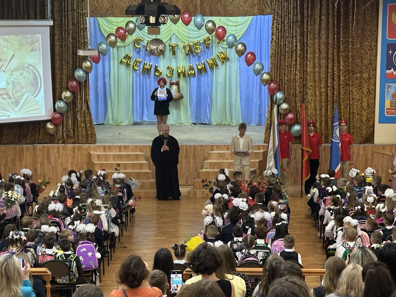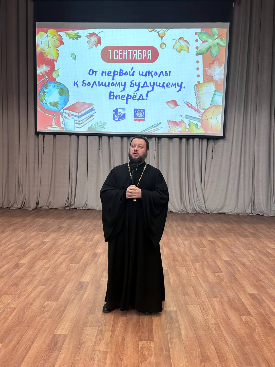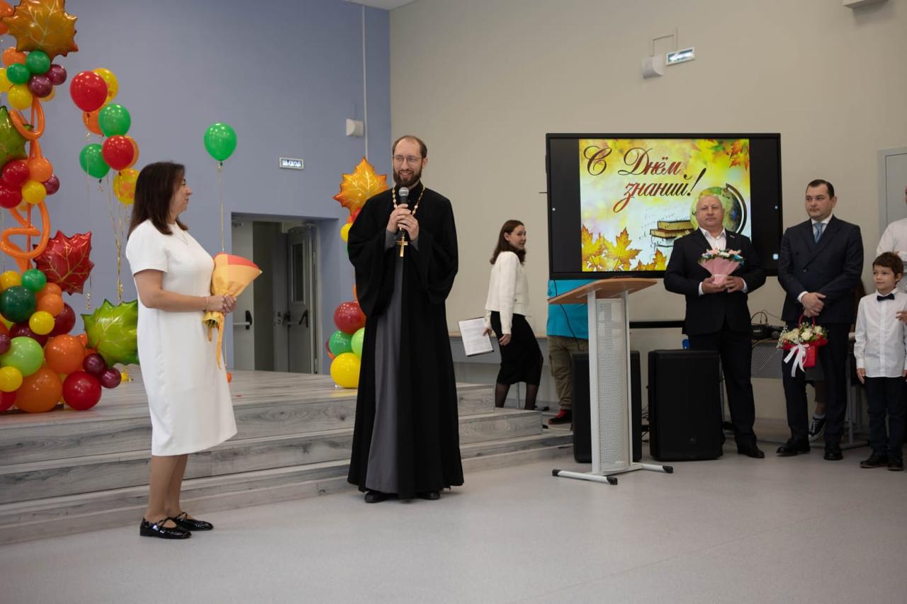 Так же настоятель Сергиевского храма иерей Алексий Шумейко посетил школьную линейку в новопостроенном здании МБОУ Средней общеобразовательной школы № 1 города Королёва.