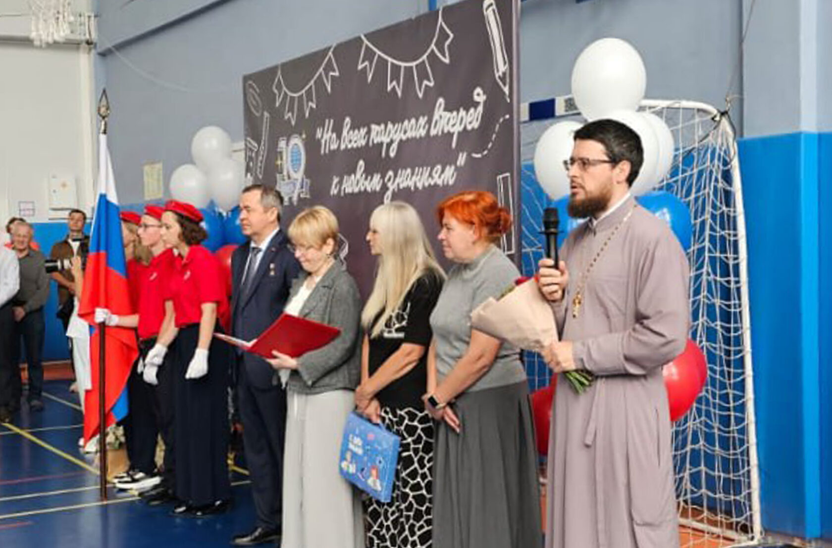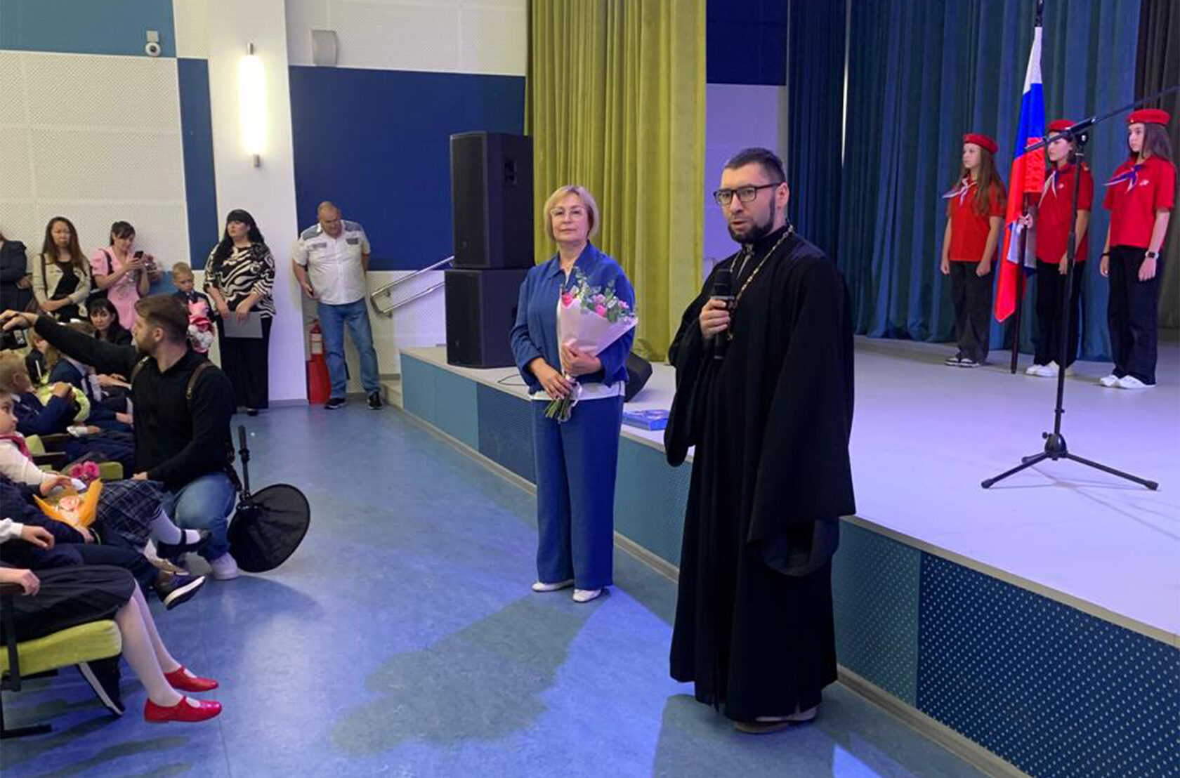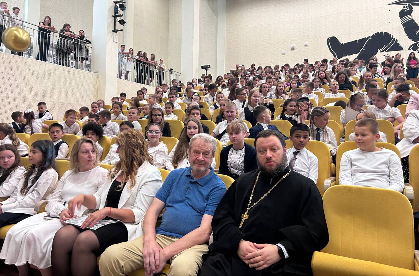 Так же настоятель Сергиевского храма иерей Алексий Шумейко посетил школьную линейку в новопостроенном здании МБОУ Средней общеобразовательной школы № 1 города Королёва.