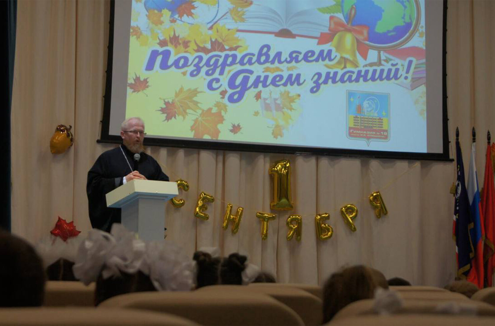 Благочинный Королёвского округа иерей Димитрий Поповский принял участие в торжественных линейках МАОУ Гимназия №9 г. Королёв.