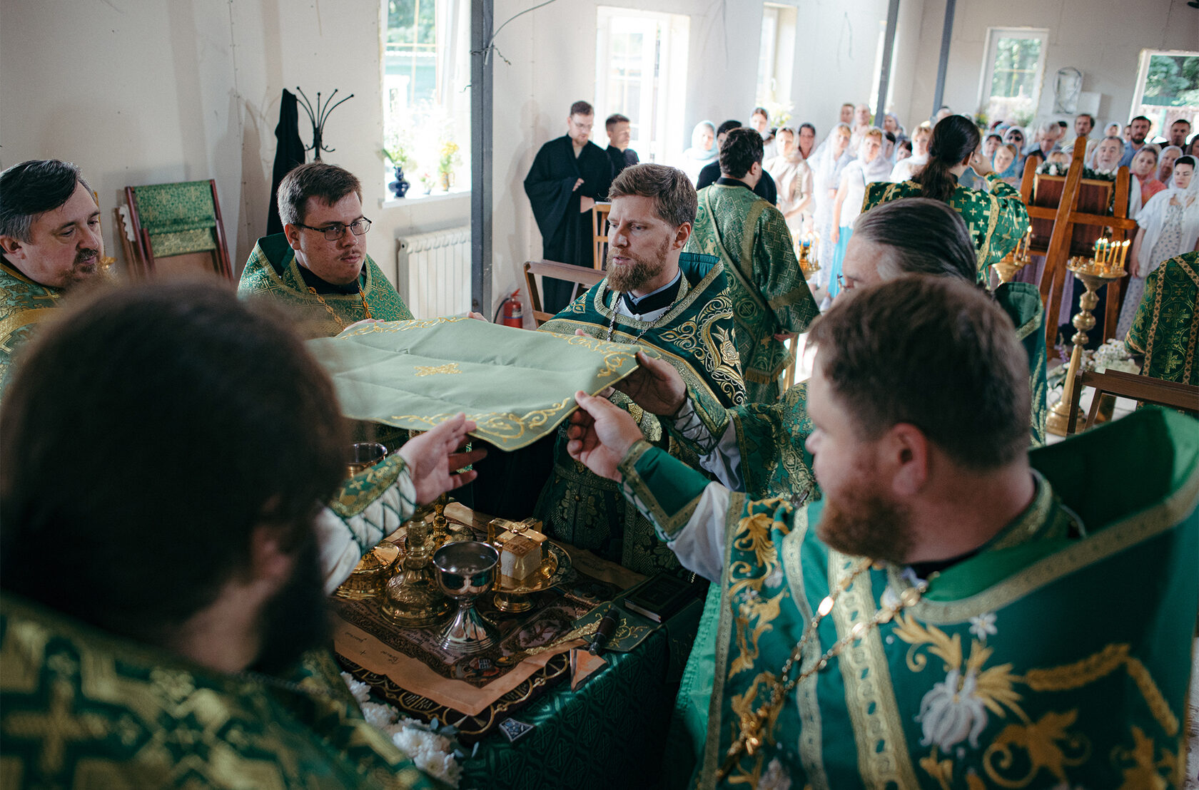 8 июля, в Седмицу 5-ю по Пятидесятнице, в День памяти святых благоверных князя Петра и княгини Февронии Муромских в строящемся храме в честь благоверных князей Петра и Февронии Муромских в г. Королёв было совершено соборное богослужение в честь престольного праздника прихода.